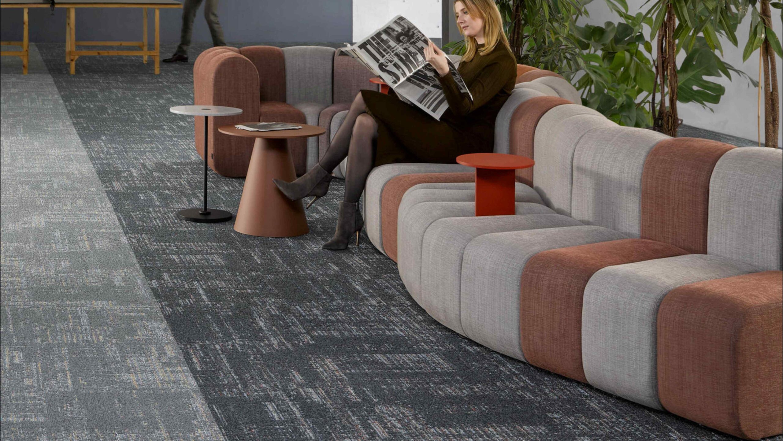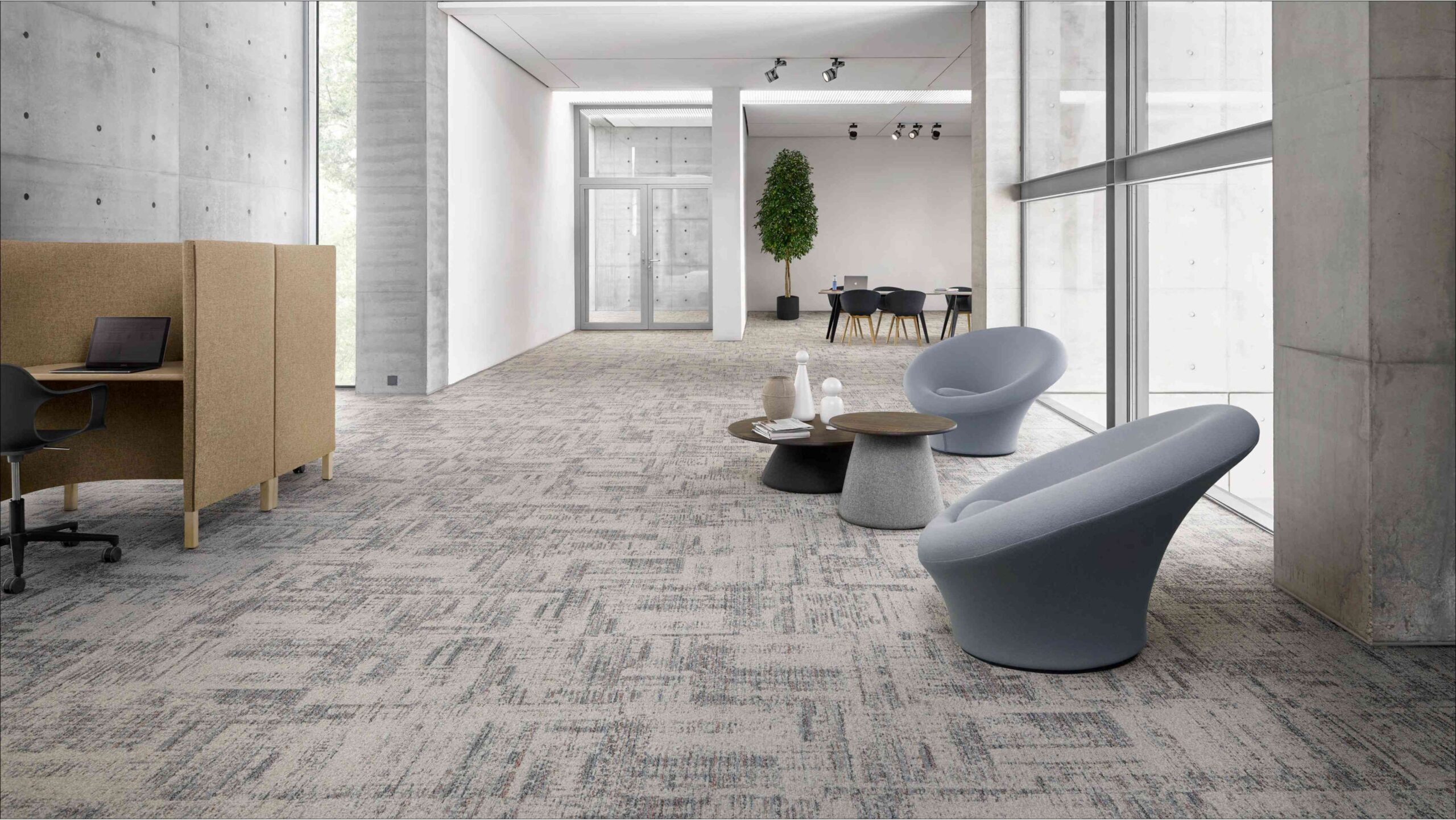 La moquette Solution Dyed utilizza filati colorati in massa prima della tessitura, garantendo maggiore durata del colore, resistenza al traffico intenso e facilità di pulizia, anche con candeggina.