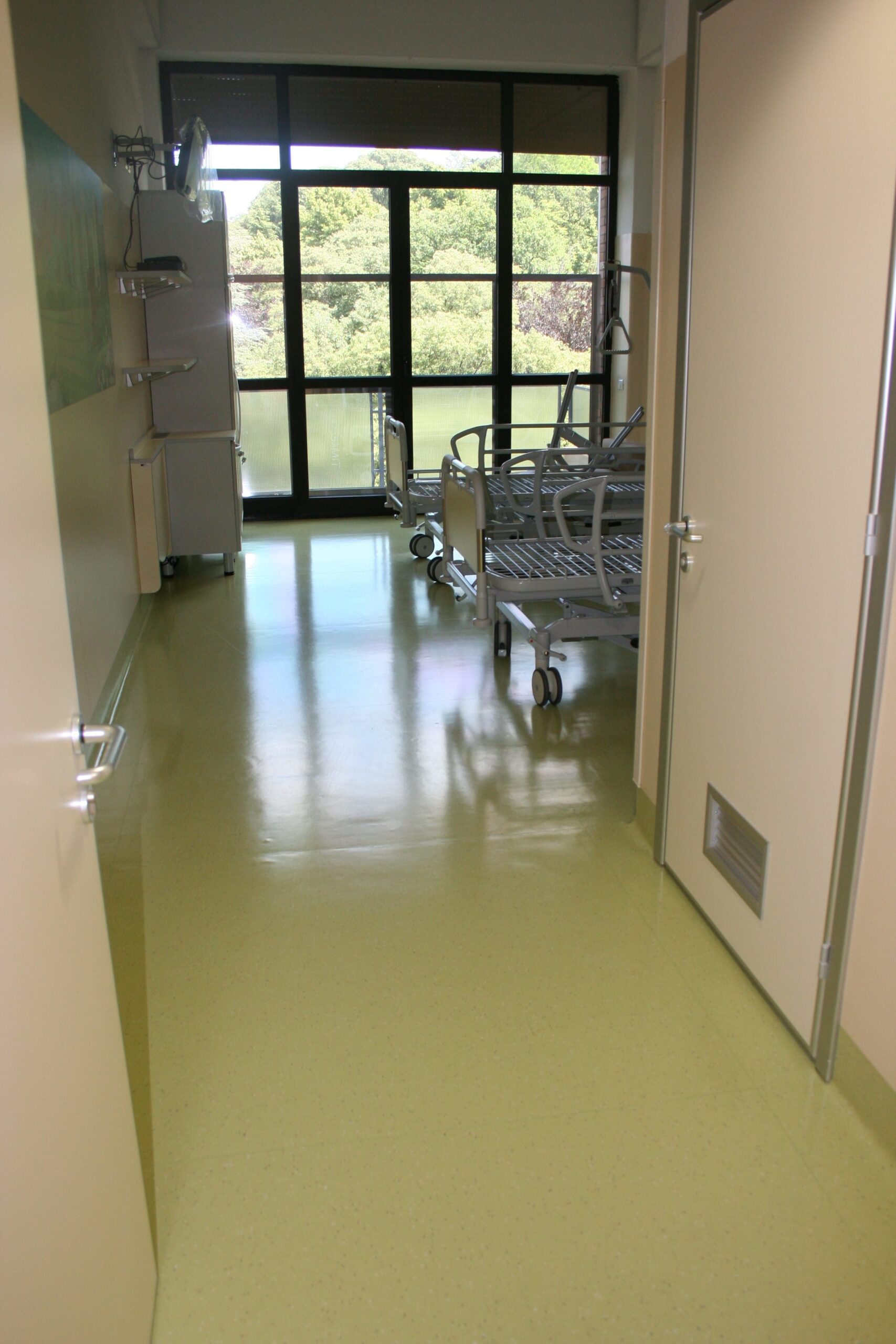 Per questo progetto è stata scelta una pavimentazione in gomma certificata classe Bfl-s1, ideale per ambienti ospedalieri grazie a elevate prestazioni tecniche, resistenza e versatilità . La gomma, combinata con materiali come il PVC, consente di realizzare spazi sicuri, accoglienti e facili da pulire, rispondendo alle esigenze operative dei reparti di degenza.